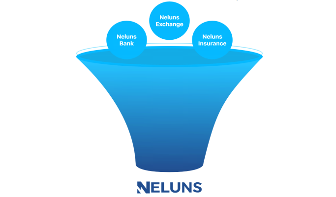 Работа Neluns сосредоточена на трех основных направлениях – банковская сфера, страхование и биржа для обмена и покупки криптоваплюты.