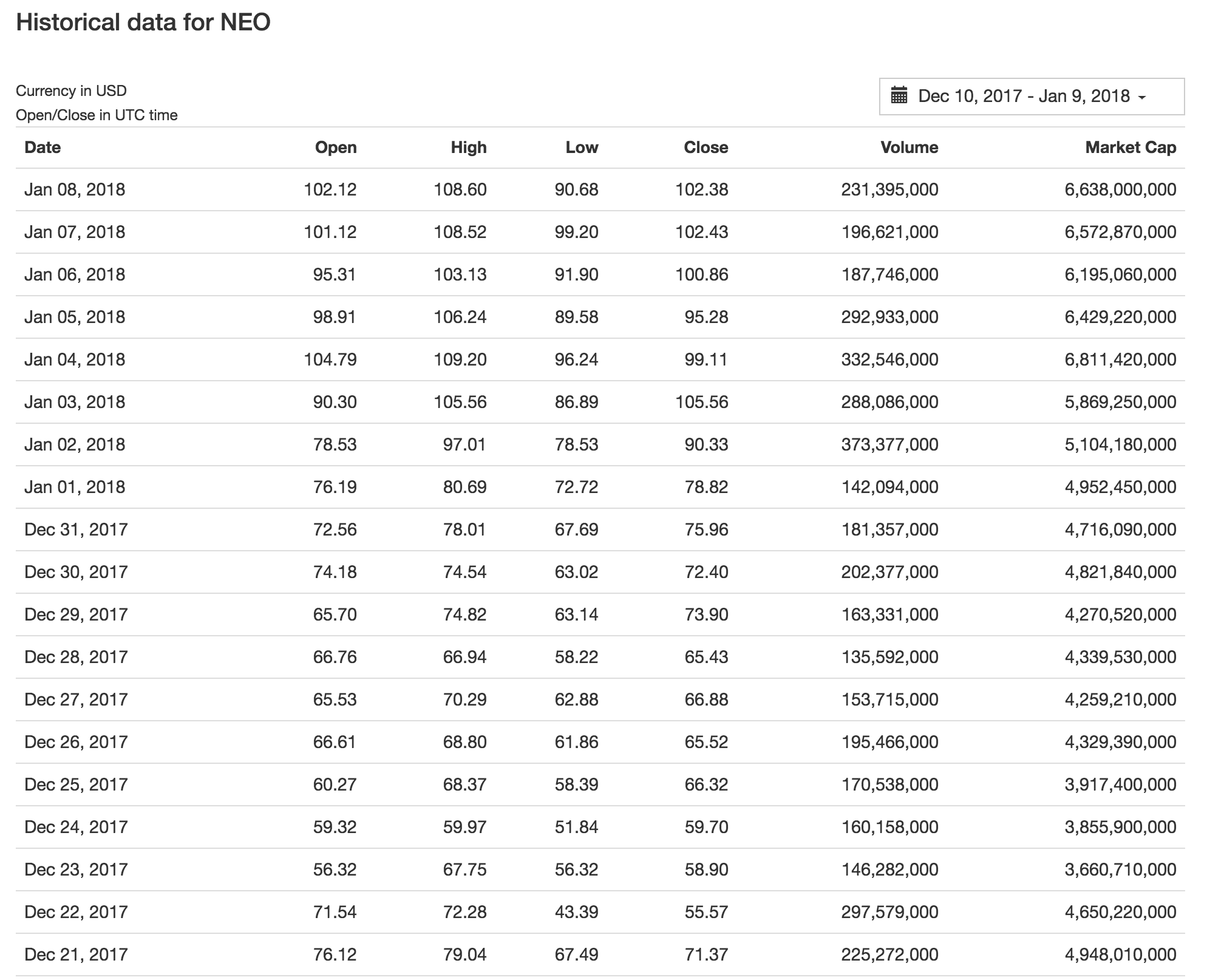 Reference Link2Historical Data of Antshares^