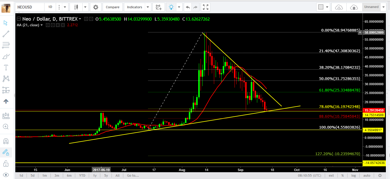 Has NEO Bottomed ?roncriss (40)in #neo • 8 years ago Hi guys, NEO and cryptos have been falling like no body's business ,Please see the chart below and share your view if this is the end of Blood bath ? #bitcoin #cryptocurrency
