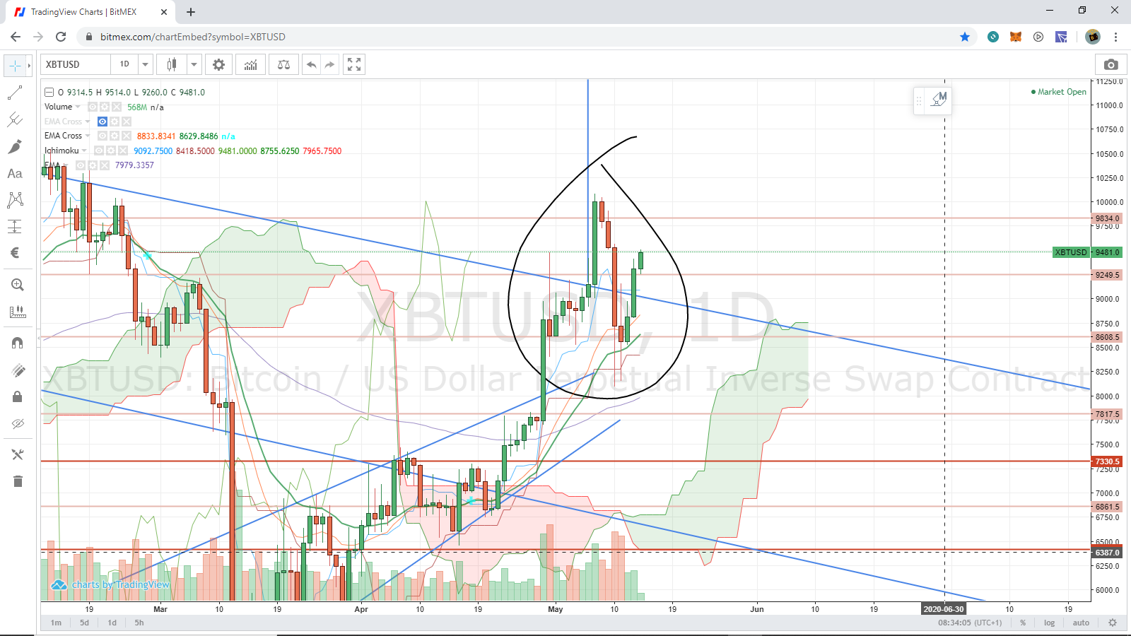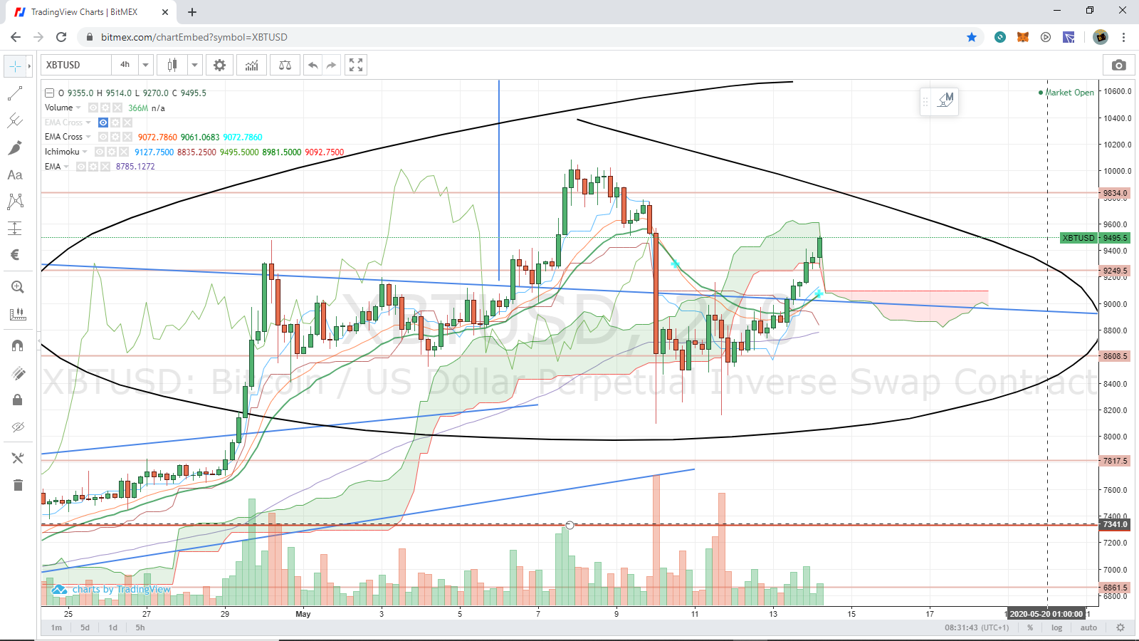 - Bearish: If we meet the ichimoku price average line (More probable)