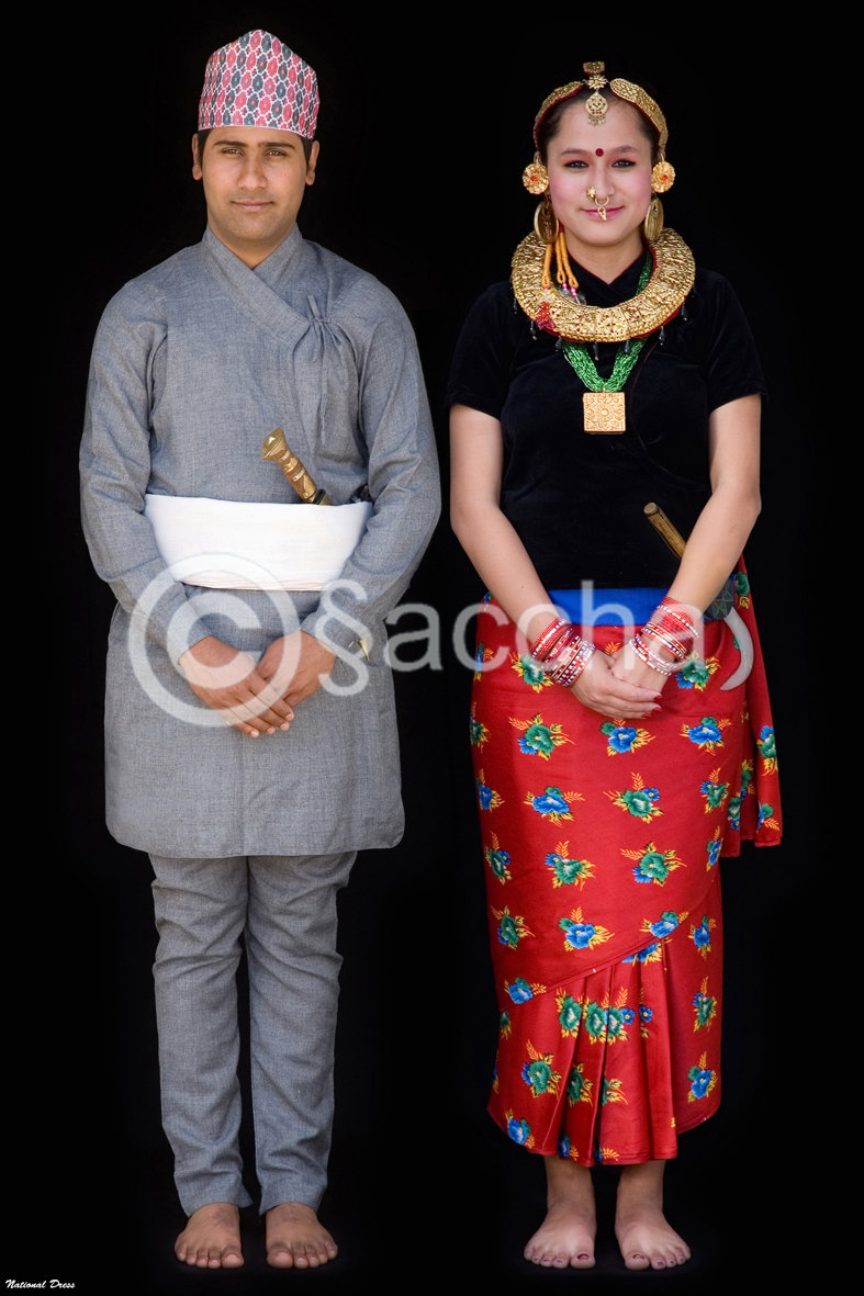 6.National Dress- Daura, suruwal, patuka and cap for men; and fariya, chawbandi cholo and majetro for women.In the celebration of national events,people decorate themselves in the national dress.