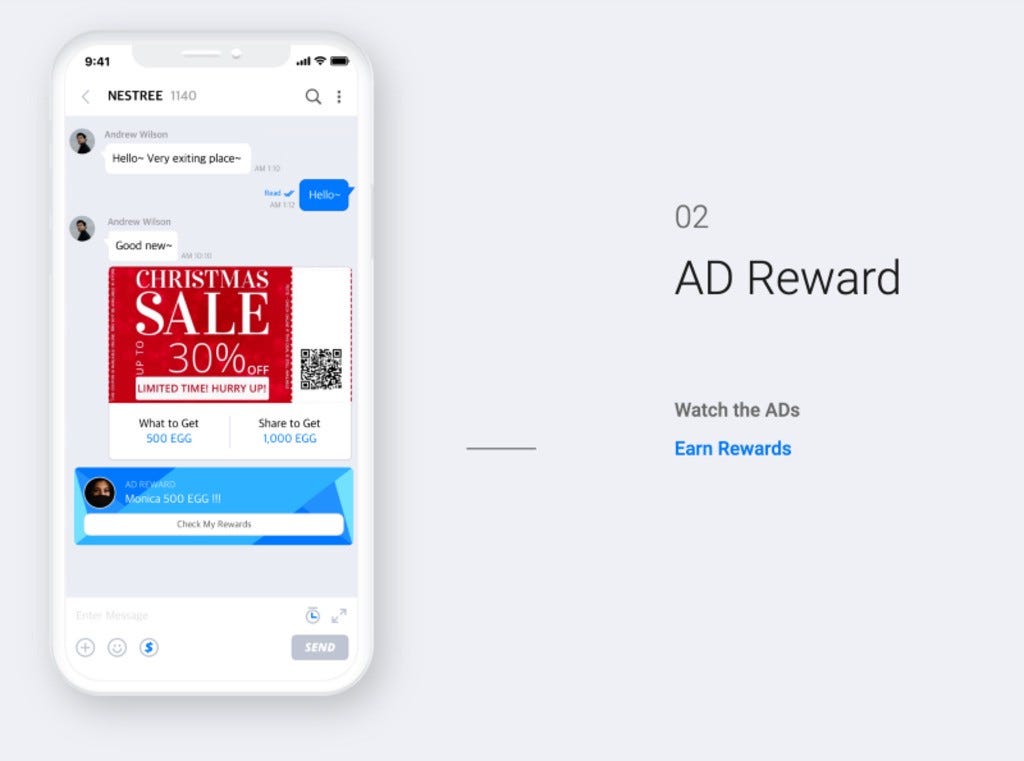 NESTREE là một sứ giả cộng đồng dựa trên phần thưởng mới và tiên tiến, dự định thưởng cho người dùng của mình thông qua quảng cáo trên nền tảng, tạo nội dung, lời mời của bạn bè và nhiều hoạt động khác được thực hiện trong nền tảng. Người dùng có xu hướng kiếm được phần thưởng cho việc xuất bản nội dung trong nền tảng. Nền tảng Messenger cộng đồng tập trung đã được biết là đã làm nô lệ cho những người sáng tạo và quảng cáo nội dung theo thời gian nhưng bây giờ tôi tin rằng chế độ nô lệ đã kết thúc với việc ra mắt nền tảng NESTREE sẵn sàng trao thưởng cho người dùng và nhà văn cho các hoạt động của họ trong nền tảng.