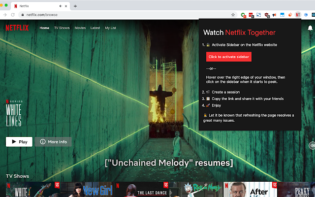 You and your partner might be in a long distance relationship, or maybe you want to bond with a friend over a Netflix movie. Trying to sync Netflix videos can be tricky, but now it's easy with a free Chrome extension called Watch Netflix Together. It was created recently and now has 136 users and counting. Check it out now at https://chrome.google.com/webstore/detail/watch-netflix-together/fdjglnlhapkoahdmanogpccpmmpnakje