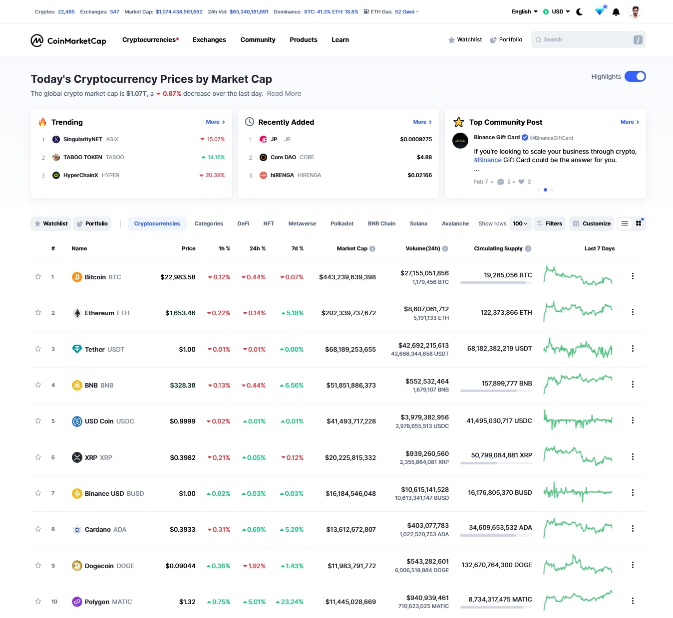 Second famous cryptocurrency tool is CoinMarketCap that is a web-based crypto price tracking platform. It allow users to have comprehensive view of the market, crypto coin news, marketcap of a coin, 24hours trading volume, circulating supply, price changes in 1hour, 24hours, 7days, and much more. You can also track your assets and their performance in Portfolio section. You can also add coins in the watchlist and set price alerts that will help you take decisions at right time.