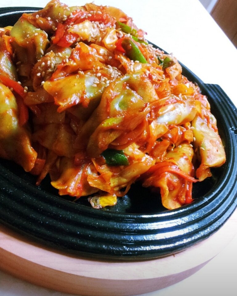 늦은밤 야식 ^^닭갈비만두 입니다iyj69 (37)in #newbie • 7 years ago 저녁을 일찍먹고 우리애들 배고프대서 급요리해보았네요 냉동실에 만두가 보이길래~ 맛있다고 또 해달라합니다 ㅋㅋ 재료:고추장,고춧가루,진간장,당근,양배추,대파,마늘,올리고당 카레가루 약간 올리브유넣고 야채볶다가 양념장넣고 해동한 만두 넣고 뒤적거린다 #kr