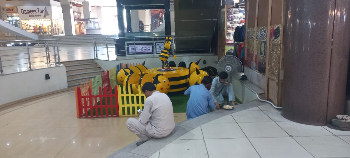 There are about 3,500 shops in this complex. It occupies a strategic and crowded commercial area which makes it a popular place for daily shopping for local buyers as well as visitors came from other areas. Different floors have various business categories. one floor is basically dedicated to Clothing, Boutiques, Bridal suits, jewelry items, electronics, room decoration items, Bedding, blankets & quiltings, toys, and video games. There are a some specific commercial and business offices, banks and ATMs. It has also the office of international money exchange office. It also contains Residential Flats that is opposite to State Bank building.