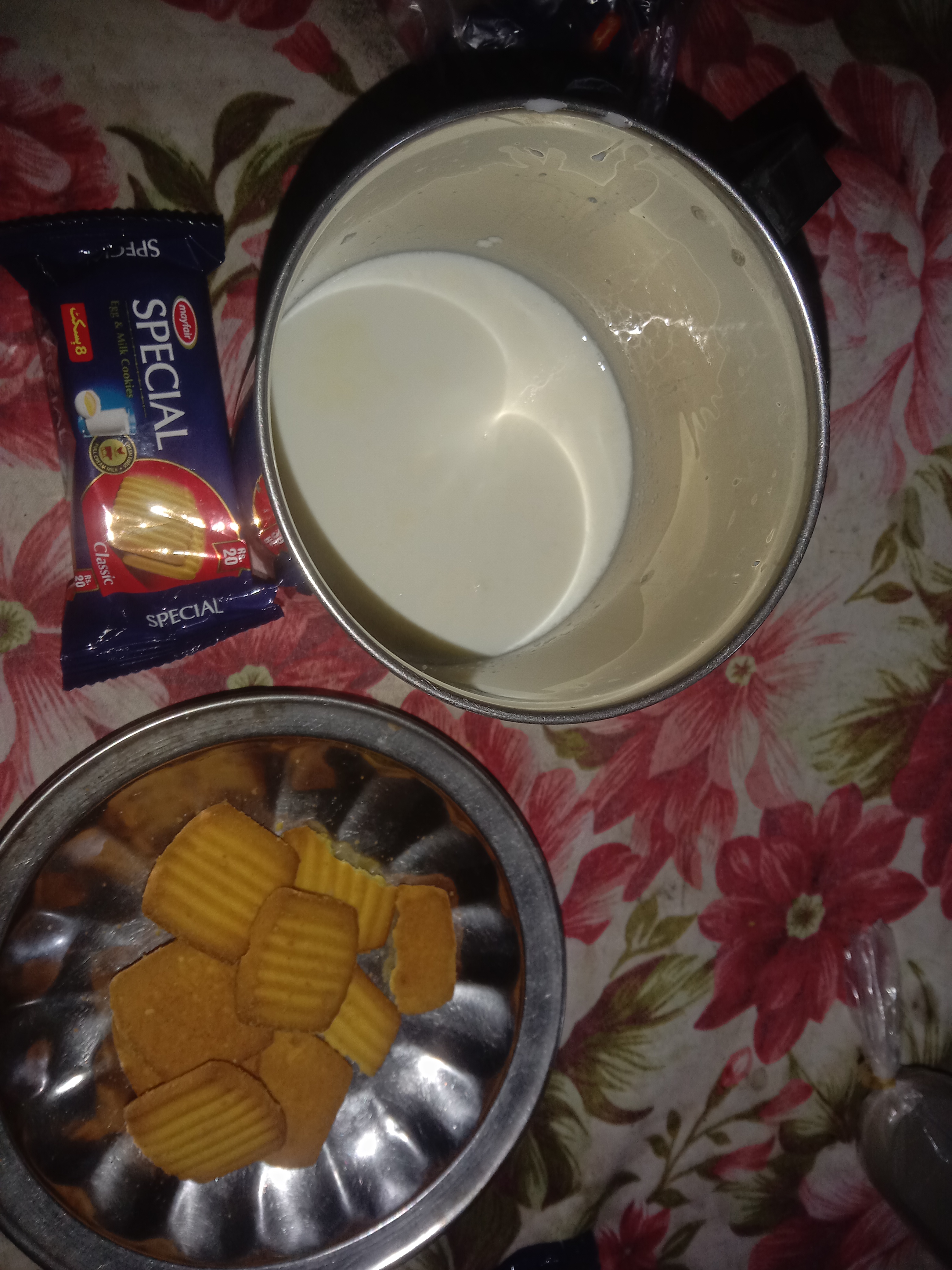 I thought why not have something to eat, so I eat biscuits with milk. It was very delicious.