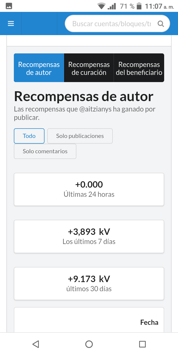 R. Pues para esto, debemos presionar dónde dice "Actividad" y nos desglosará una serie de opciones en donde seleccionamos lo que queramos ver (publicaciones, votos, respuestas, reblogueos, recompensas o transferencias).