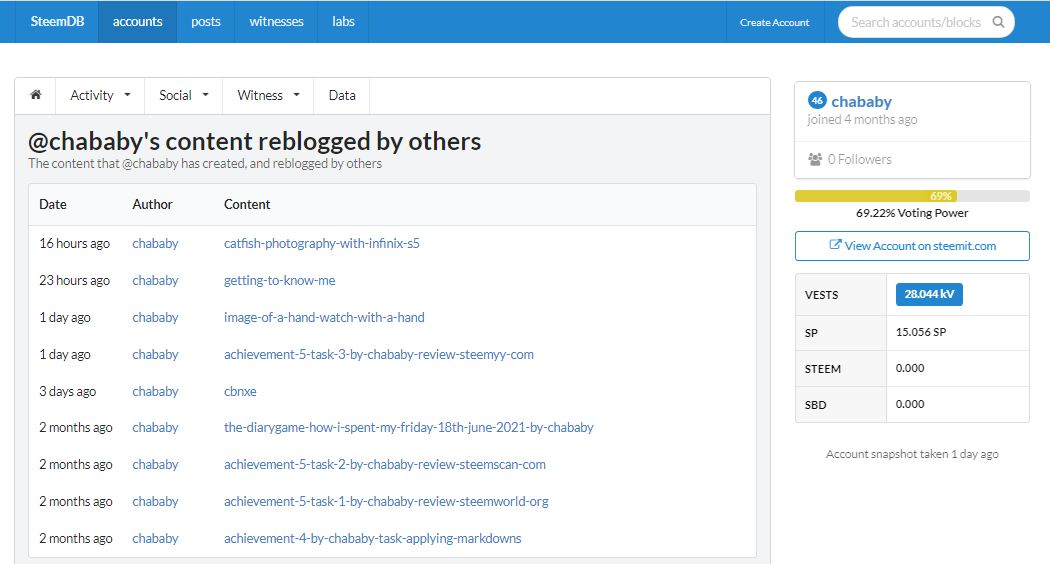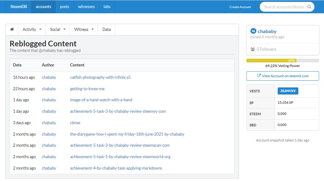 hello again I am @chababy and this is my achievement 5 task 4 as required by @cyptokanon on the review of steemdb.io