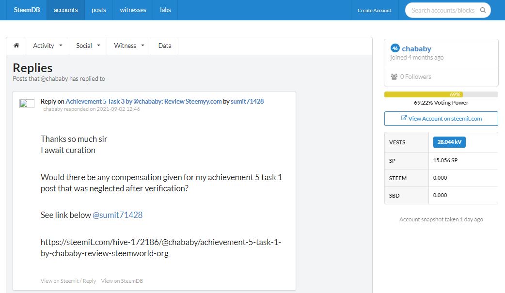 Achievement 5 Task 4 by @chababy : Review steemdb.io