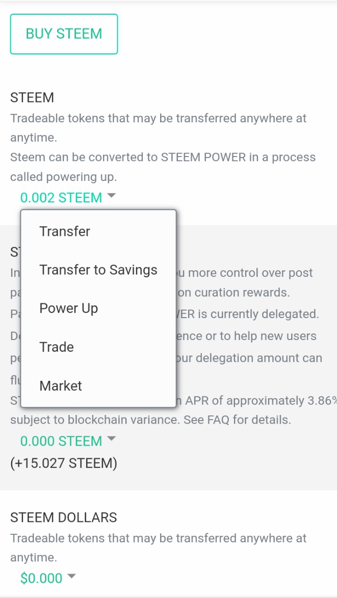 - Similarly, to power up my Steem, I clicked on the STEEM. A menue appeard and I clicked on the power up.