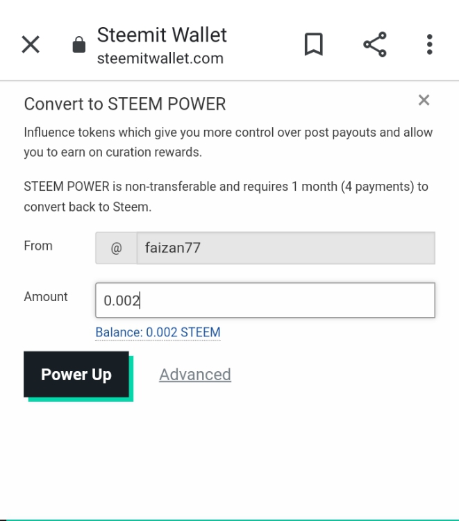 - After clicking the power up, a box appeared in which I entered the amount and pressed the power up option.