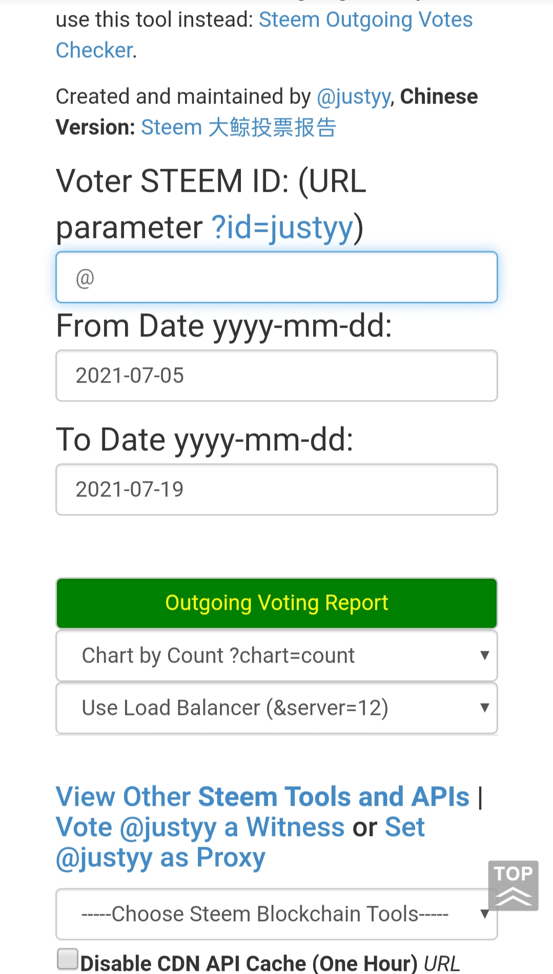 Jika Anda ingin memeriksa suara keluar yang perlu Anda lakukan adalah mengklik ID steem pemilih lalu masukkan nama pengguna Anda dan klik tombol hijau Anda.