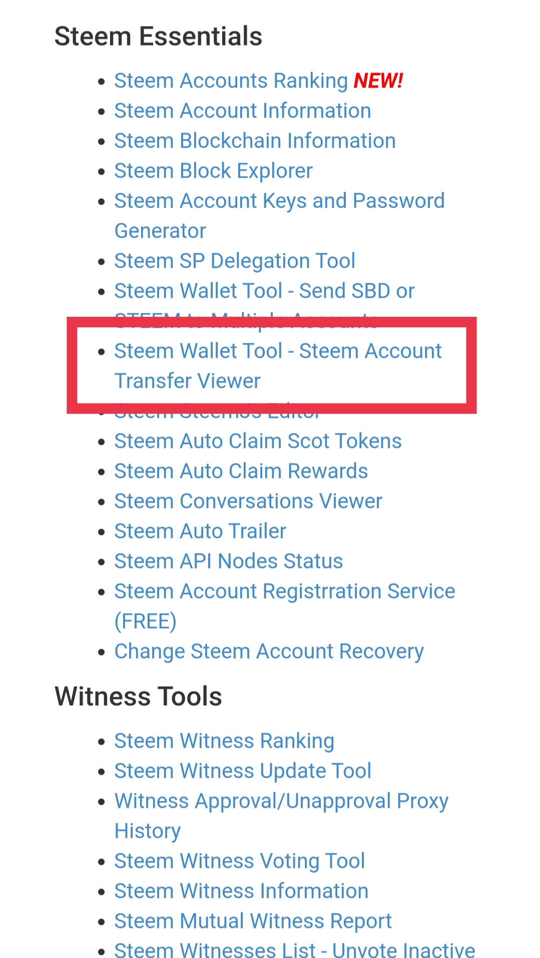 Klik tool yang ada setelah anda berada di steemyy.com lalu scroll kebawah di steem essentials klik steem wallet tool -steem account transfer viewer.