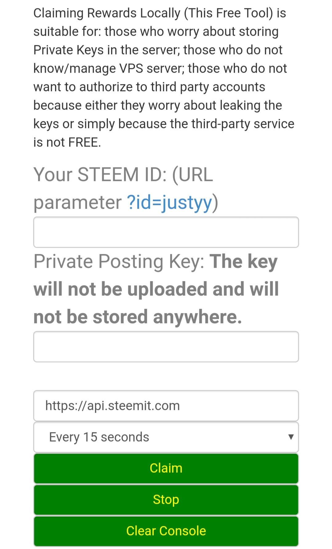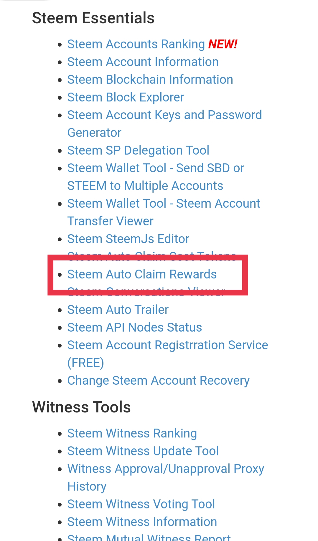 Hadiah klaim otomatis steem dapat ditemukan di alat di bawah esensial, jika Anda mengkliknya, hal berikutnya adalah mengisi nama pengguna steemit Anda kemudian kunci posting pribadi steemit Anda dan kemudian klik mulai.