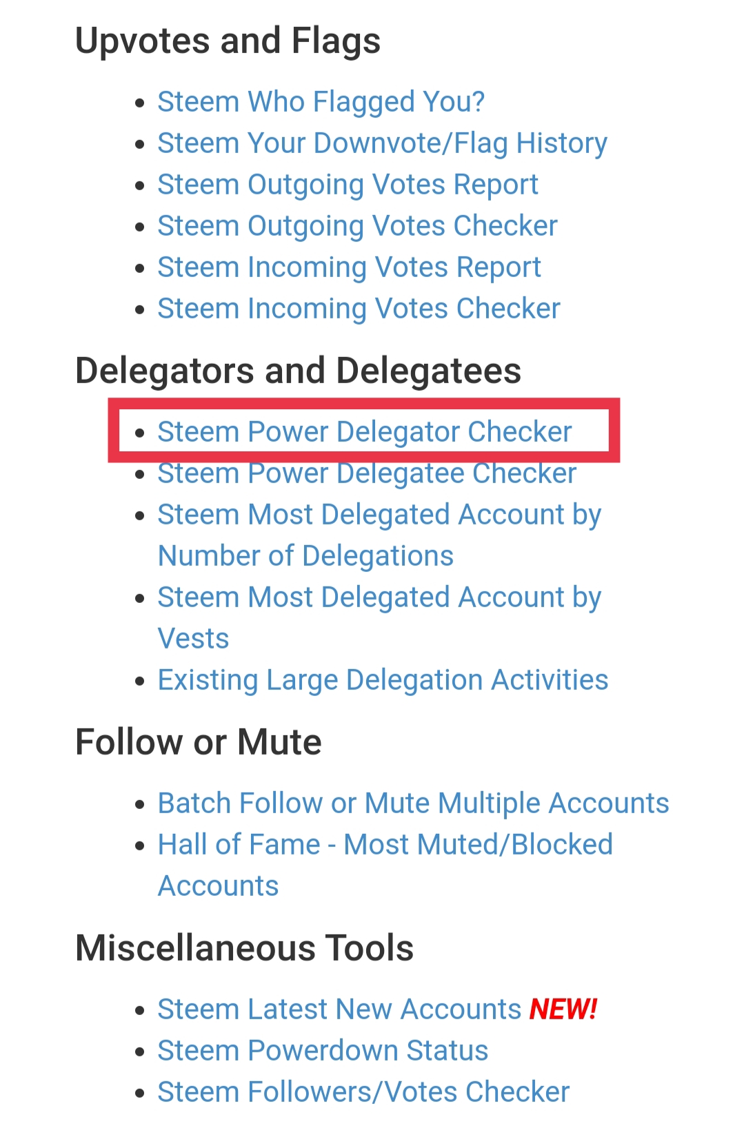 adalah klik steem power checker delegator di bawah delegator dan delegasi.