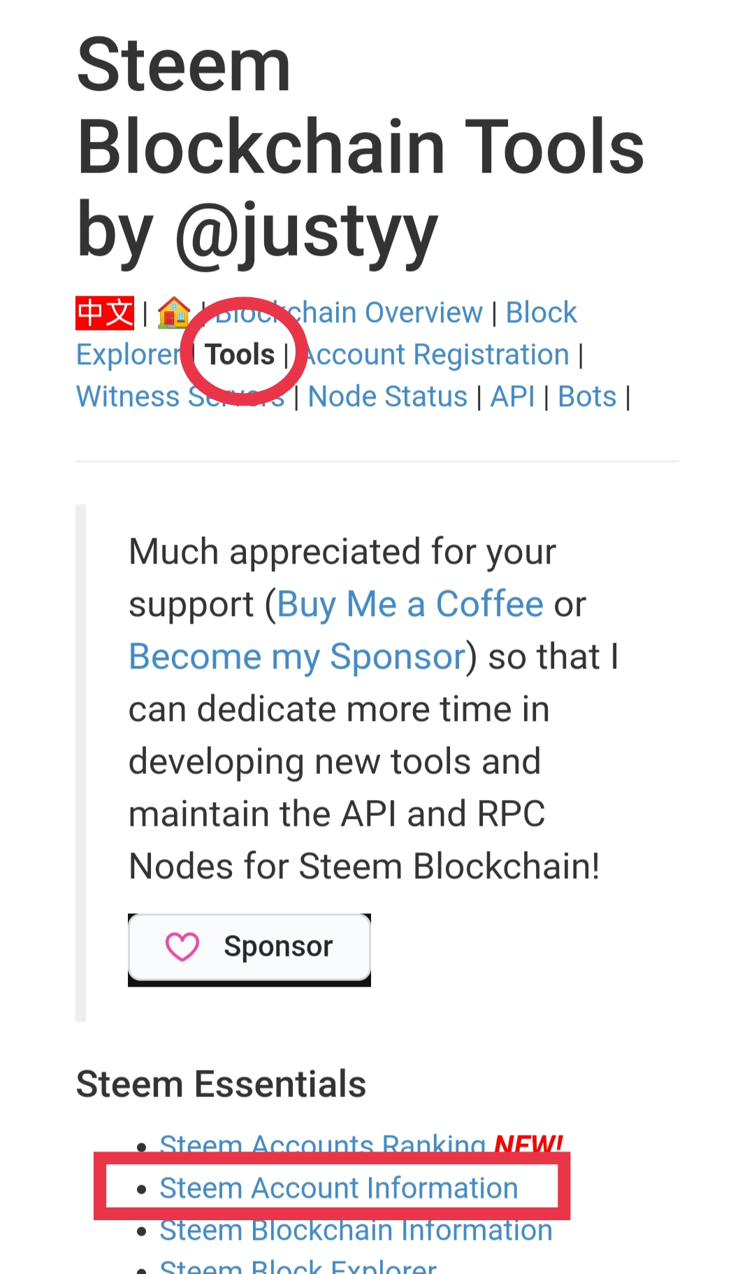 Untuk memeriksa ini, Anda harus login lalu klik steemyy.com lalu klik alat lalu klik informasi steem lalu tulis nama akun anda dan tekan query & consule log