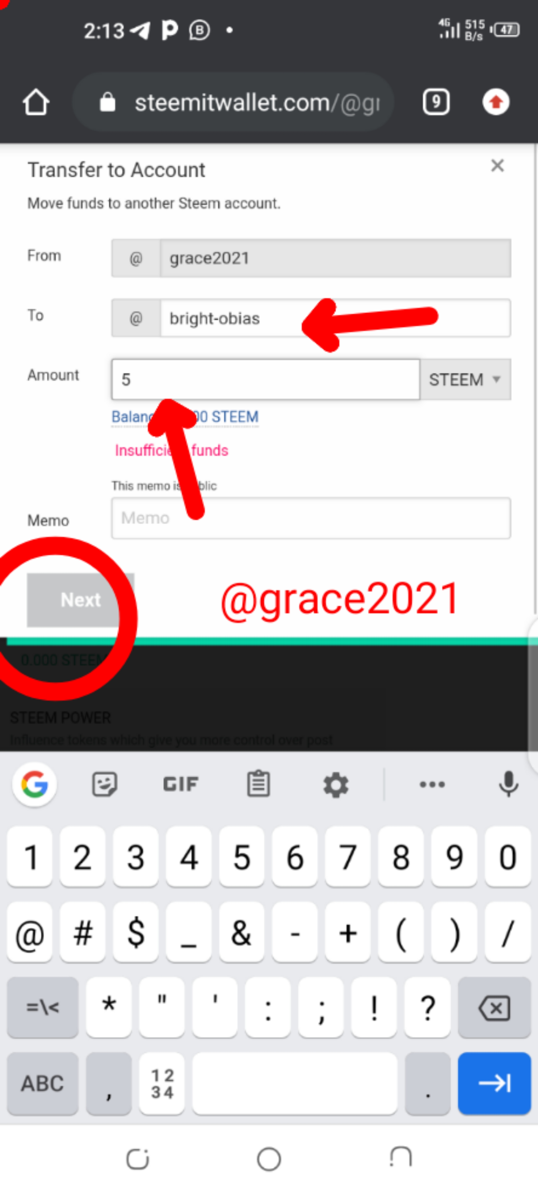 Specified the details of the users' details to transfer the #steem to. If it's other platforms, the memo key of the person will be required and click ** NEXT** To confirm the details and click Ok it will be successfully.