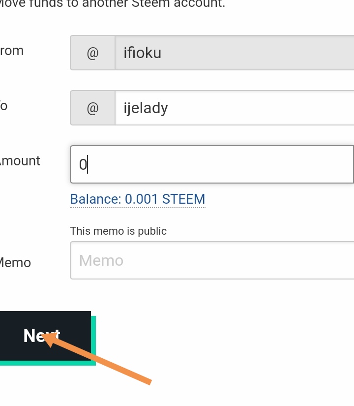 The input Username and amount in the next page and click on next