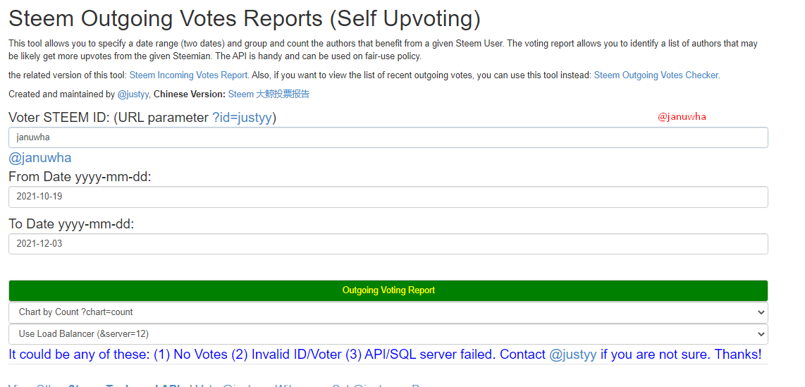 To be able to check the vote report, you can also click the tool then click and select the steem outgoing vote report on the upvotes and flags menu. After that you enter the steem outgoing vote report, then you can fill in your username and start date to check the outgoing vote.