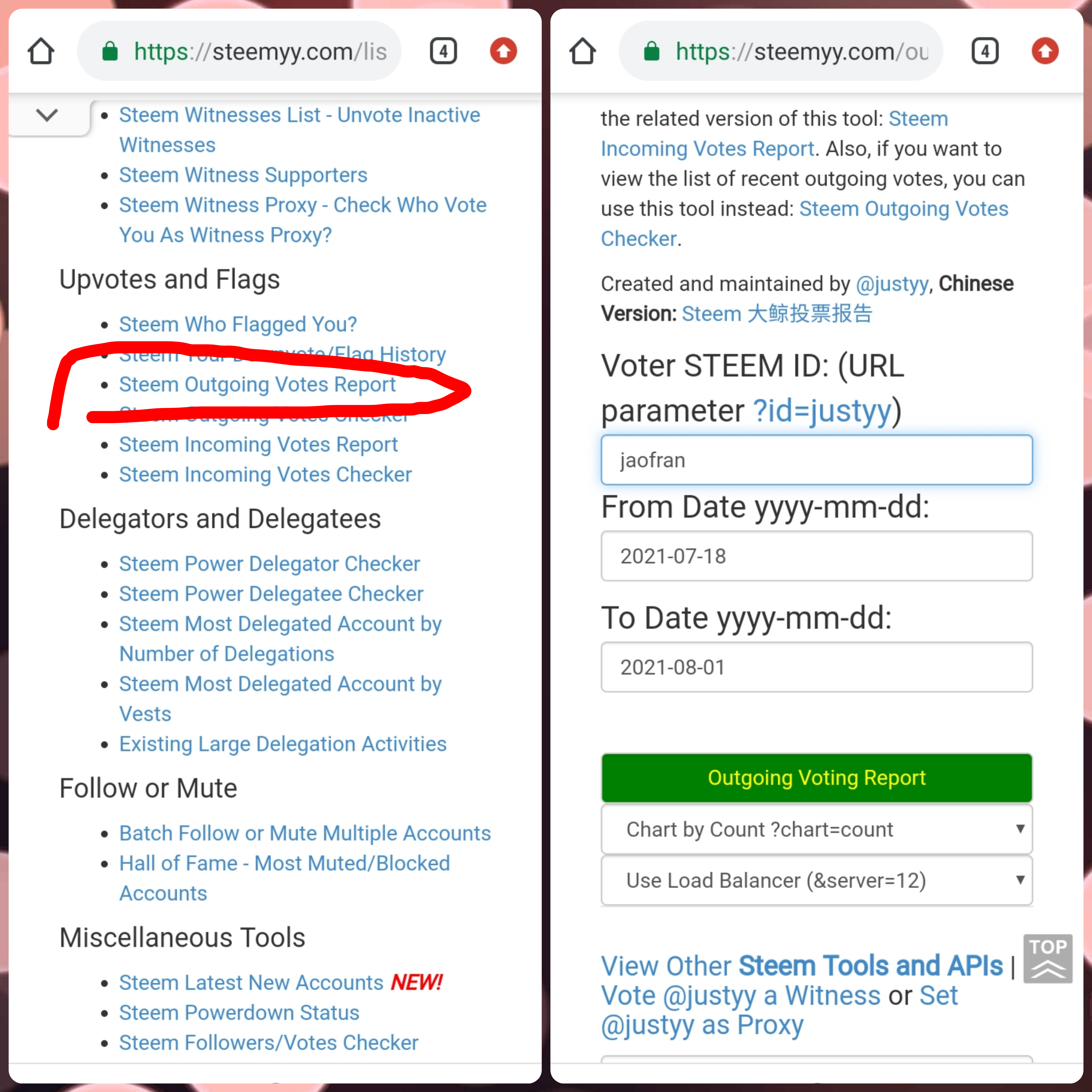 5.How do you check the outgoing votes report for any specified period using "Steem Outgoing Votes Report"?