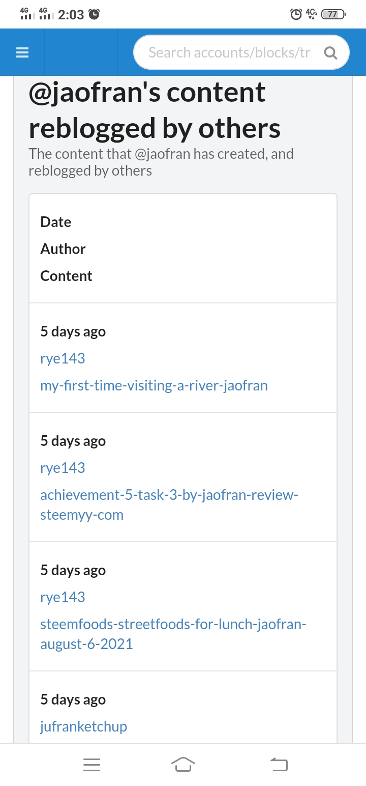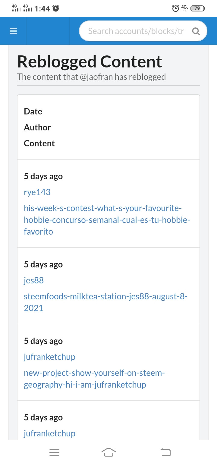 It shows the articles that I reblogs. The last time recorded is 5 days ago.