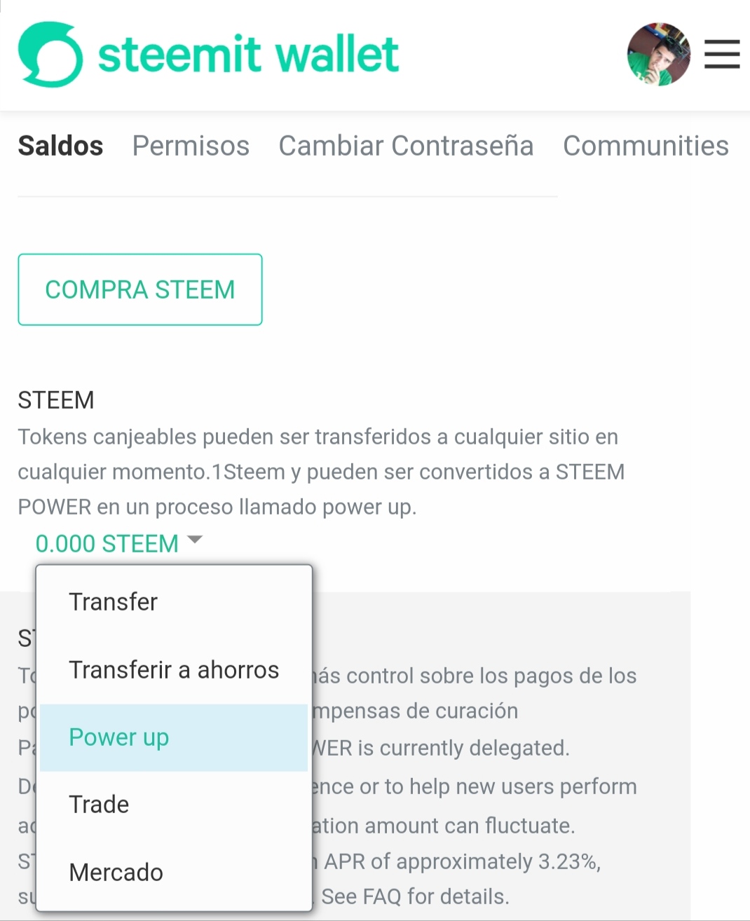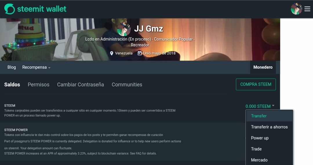 Ya tenemos resguardada y protegida nuestra cuenta, pero ahora, a transferir nuestras Ganancias, hay 2 vías: Convertirlas en moneda de cambio (Pasandolas a otras personas o retirándolas a Divisas) y Potenciar tu cuenta, Convertirlas en Steem Power, todo ésto se realiza desde la Wallet (Monedero) de la Plataforma.