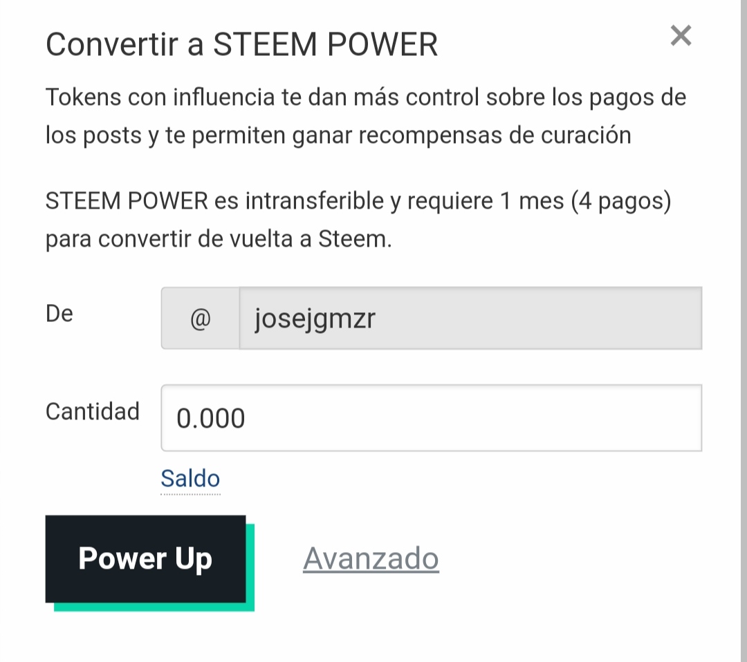 En el caso de lo más pedido e incentivado en la Plataforma, cómo lo es el tan mencionado POWER UP, o potenciar tu Steem, seguimos el mismo procedimiento, pero en el menú que despliega la Página al seleccionar la flecha seleccionamos Power Up, rellena los campos y a potenciar.