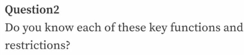 Ans: Yes i know all the functions, restrictions and rules of these keys.
