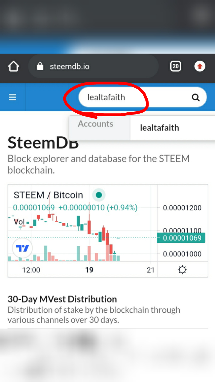 *Next thing we need to do is go to "search" bar and enter steem account username and then click the 🔍 search icon.