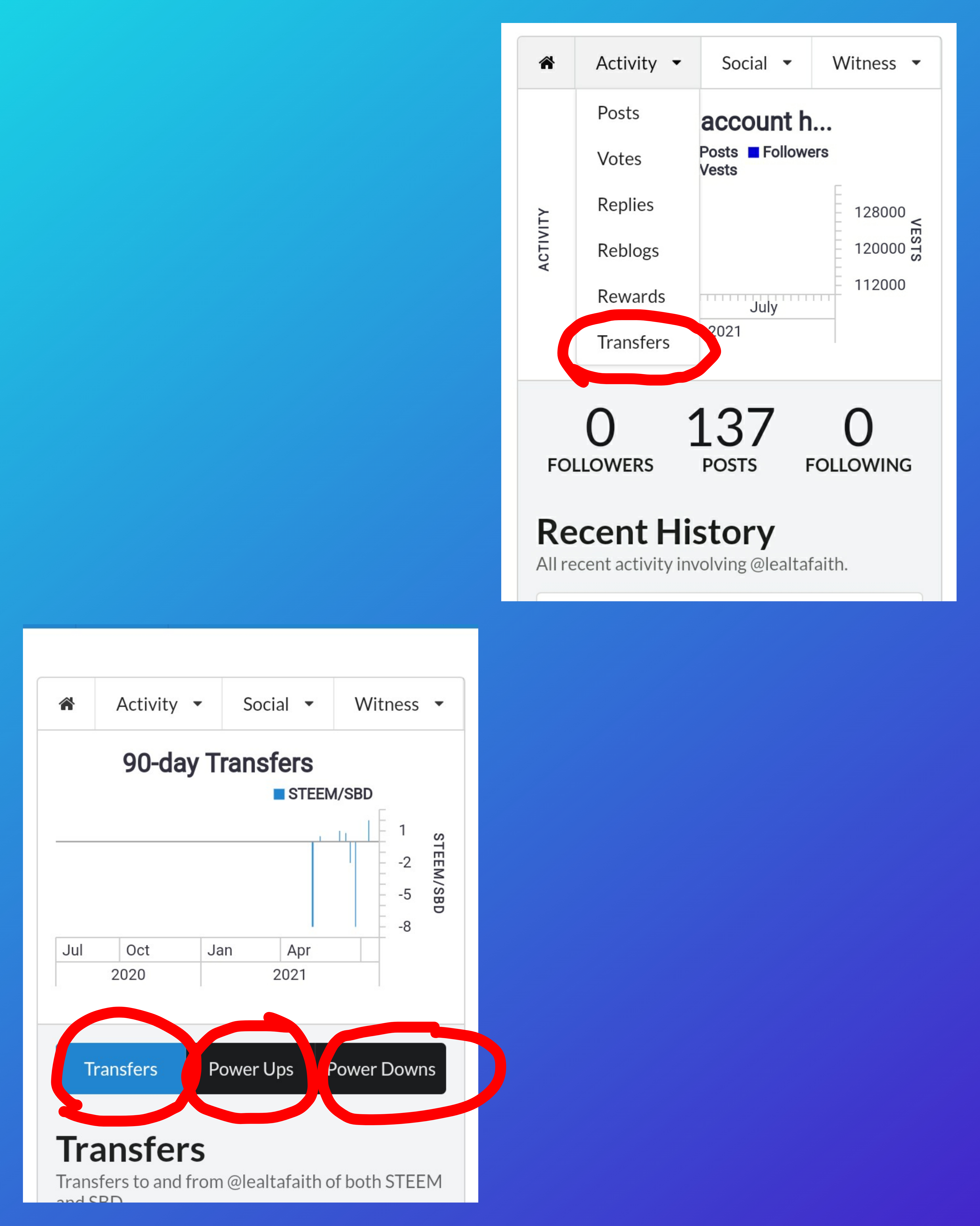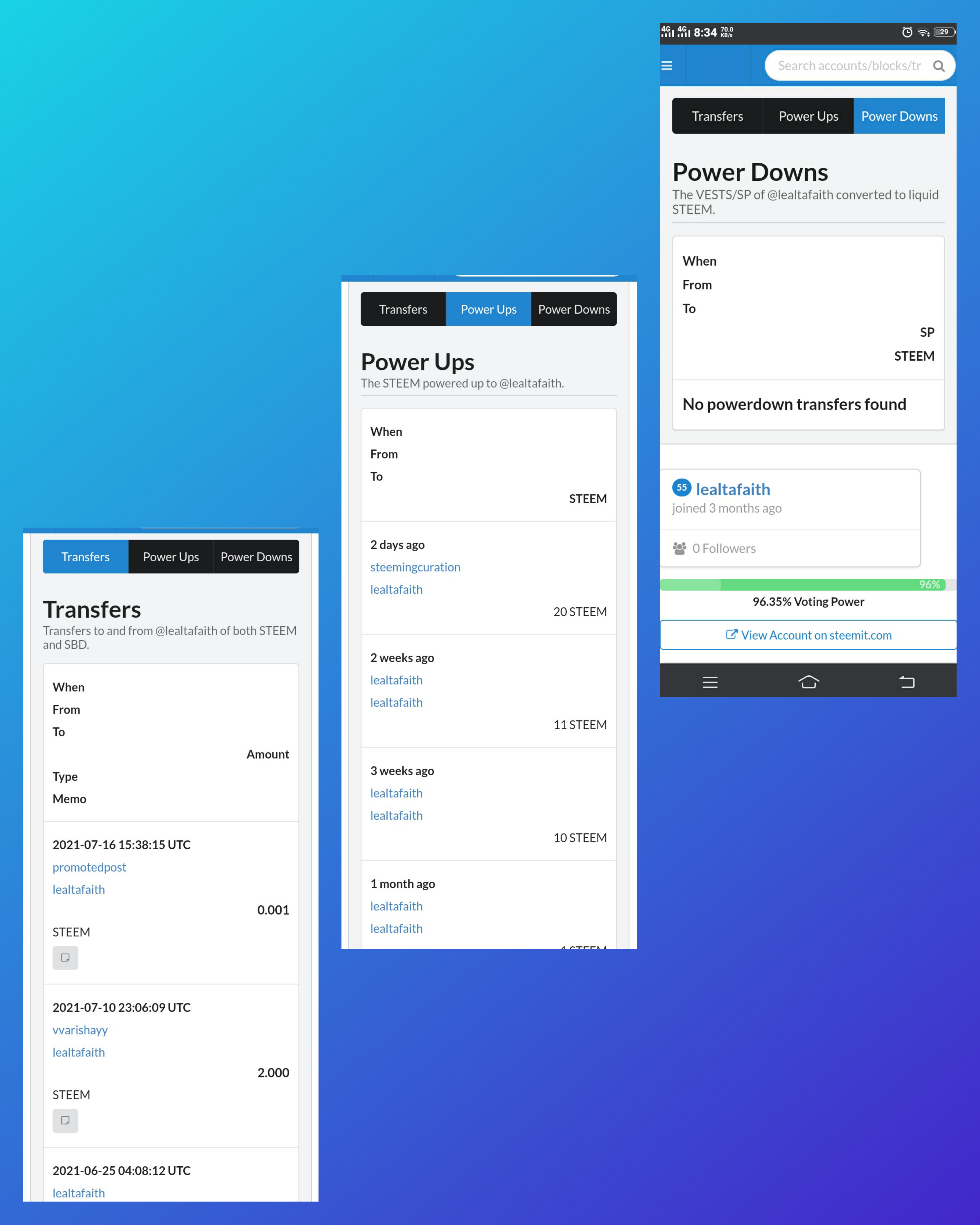It shows the 90-day Transfer Activities in my account and also contains the data of "Power Ups" and "Power downs" transactions.