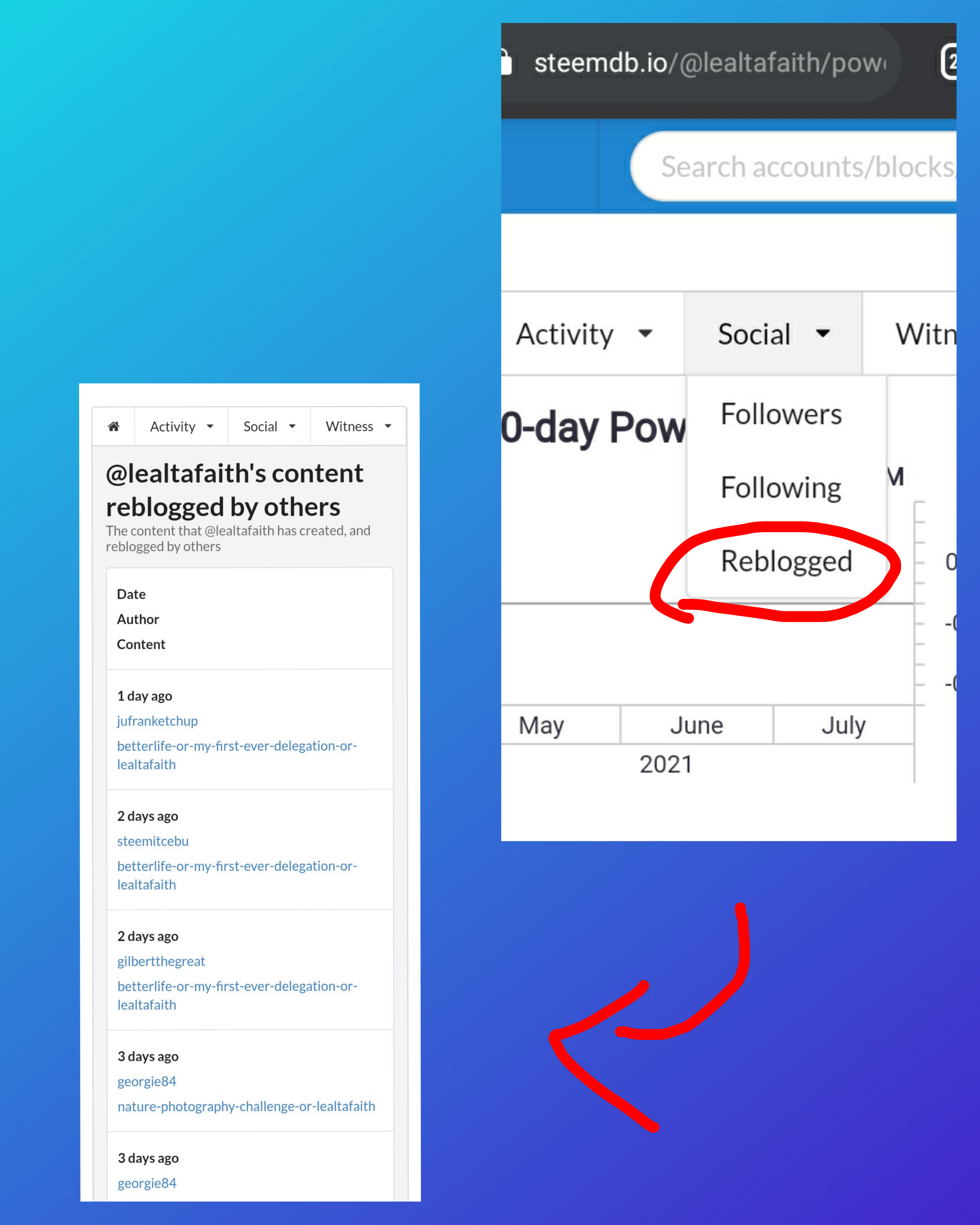 3.How do I know who has reblogged my post: (Social: Follower, Following, Reblogged)?