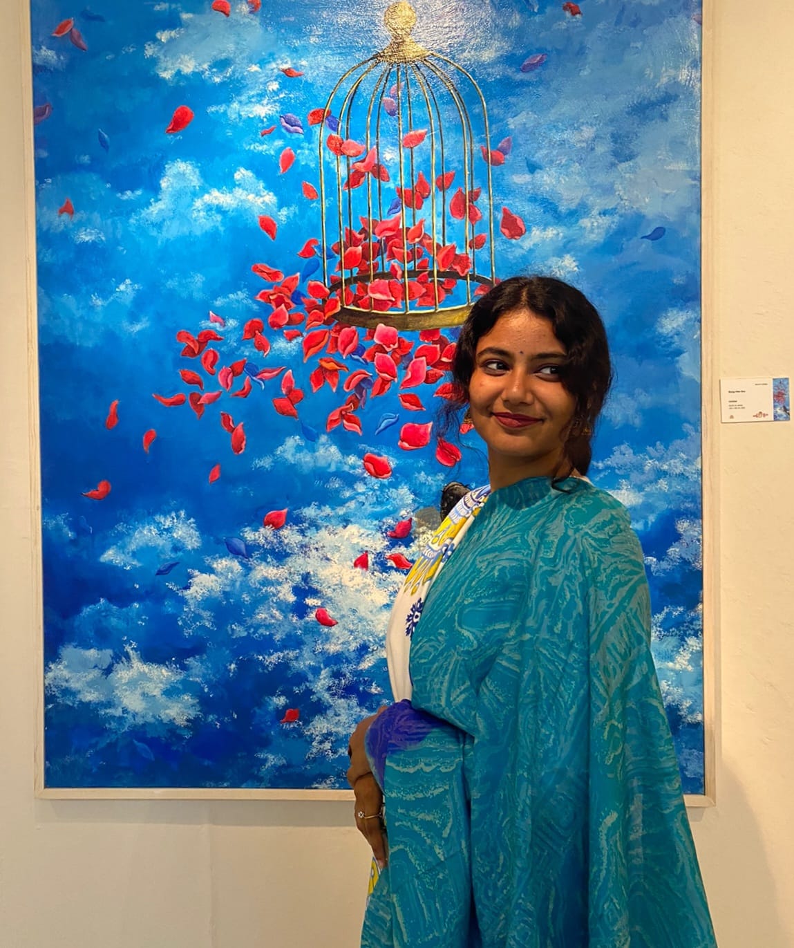 My everyday life is mostly spent with my 2 best friends: Mayesha and Tahmeed. They are hilarious and have accompanied me in all sorts of situations. I can count on them whether it is about my mental health or for any fun activities.I have a busy schedule due to my theory and laboratory classes at University but whenever I have a brief free moment I try to uplift my mood. My favorite activities are listening to music,reading detective novels, wearing a saree, watching thriller and horror movies or tv series, trying new foods, watching football, games, and painting. I started painting for stress relief during the Covid time in 2020 and ever since it has been therapeutic for me.