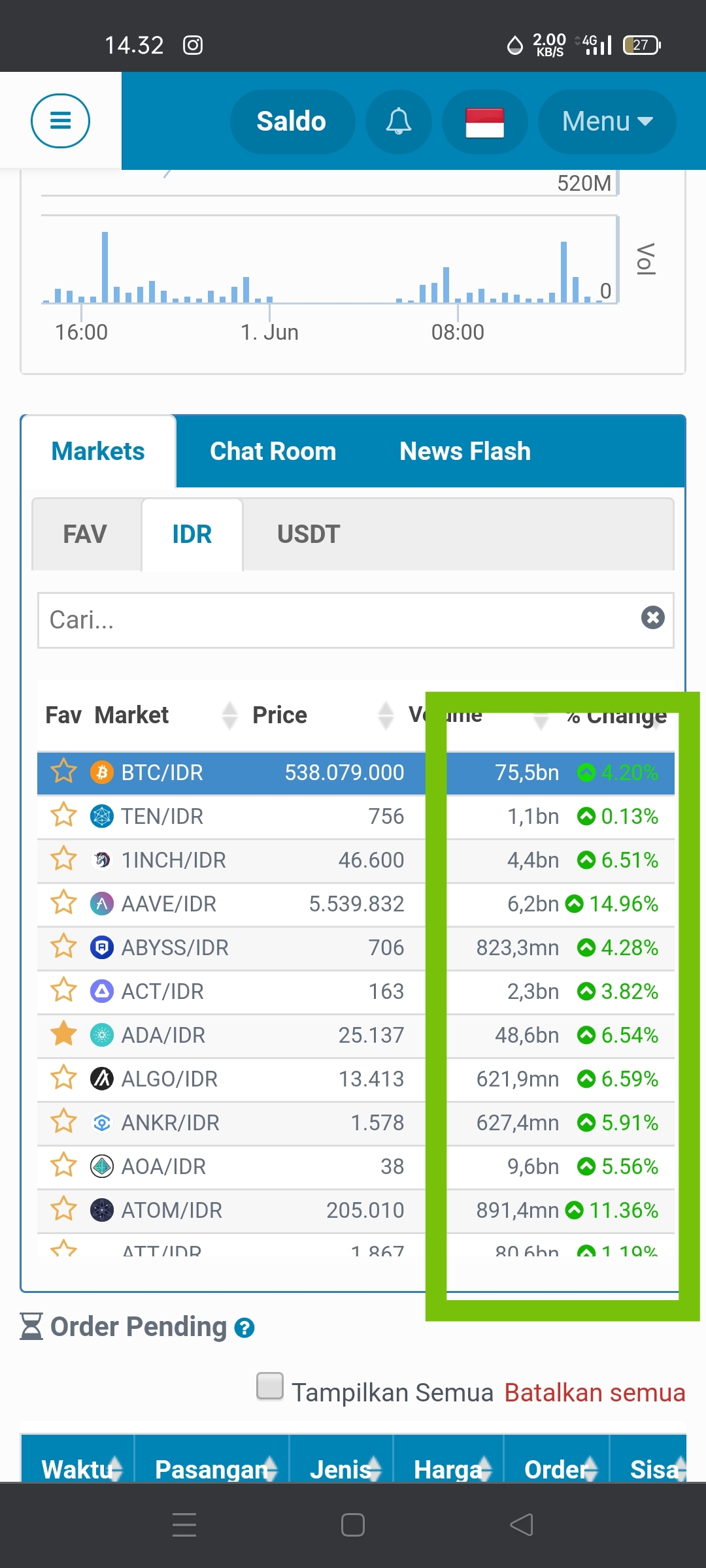 Analisa persen nya banyak yang hijau ....bagi teman teman yang mau ,beli saham bleh beli dari sekarang sebelum ,ia naik setinggi langit ,karena ini selagi murah ....ayo serbu.😎