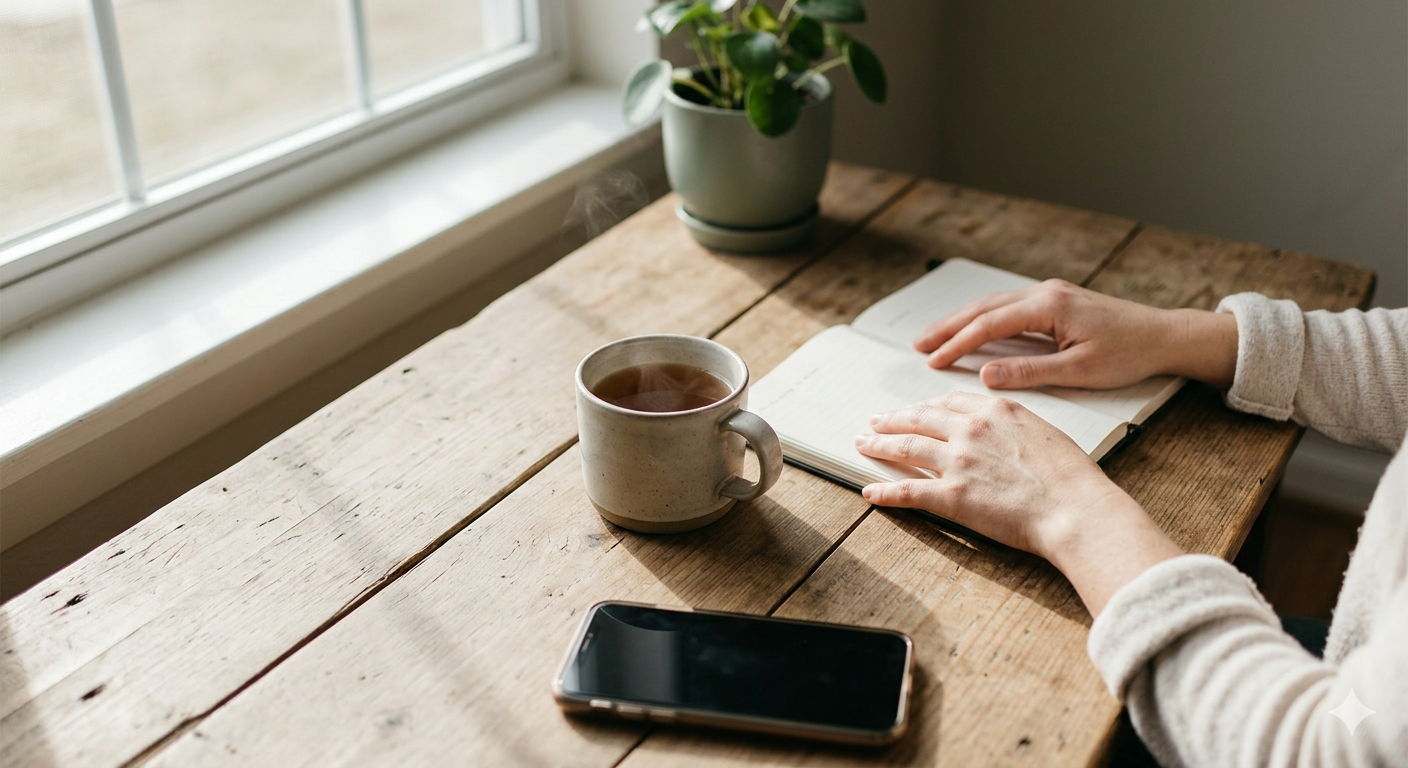 Ritual 2: Mindful Mornings. Suggest spending the first few minutes after waking up in mindfulness—meditation, breathing exercises, or a short walk—instead of reaching for the phone.