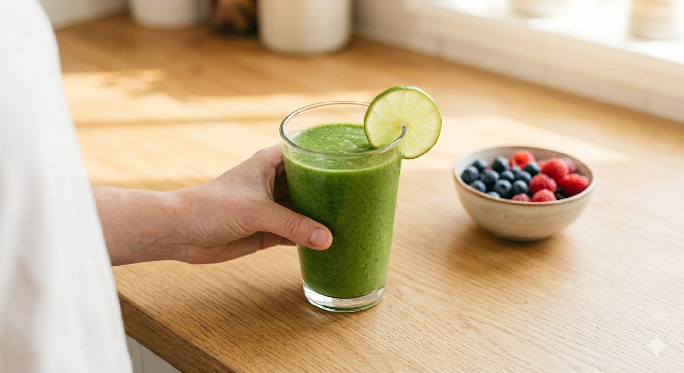 Ritual 3: Nutritious Nourishment. Focus on mindful eating, highlighting the importance of fresh, whole foods and adequate hydration throughout the day.