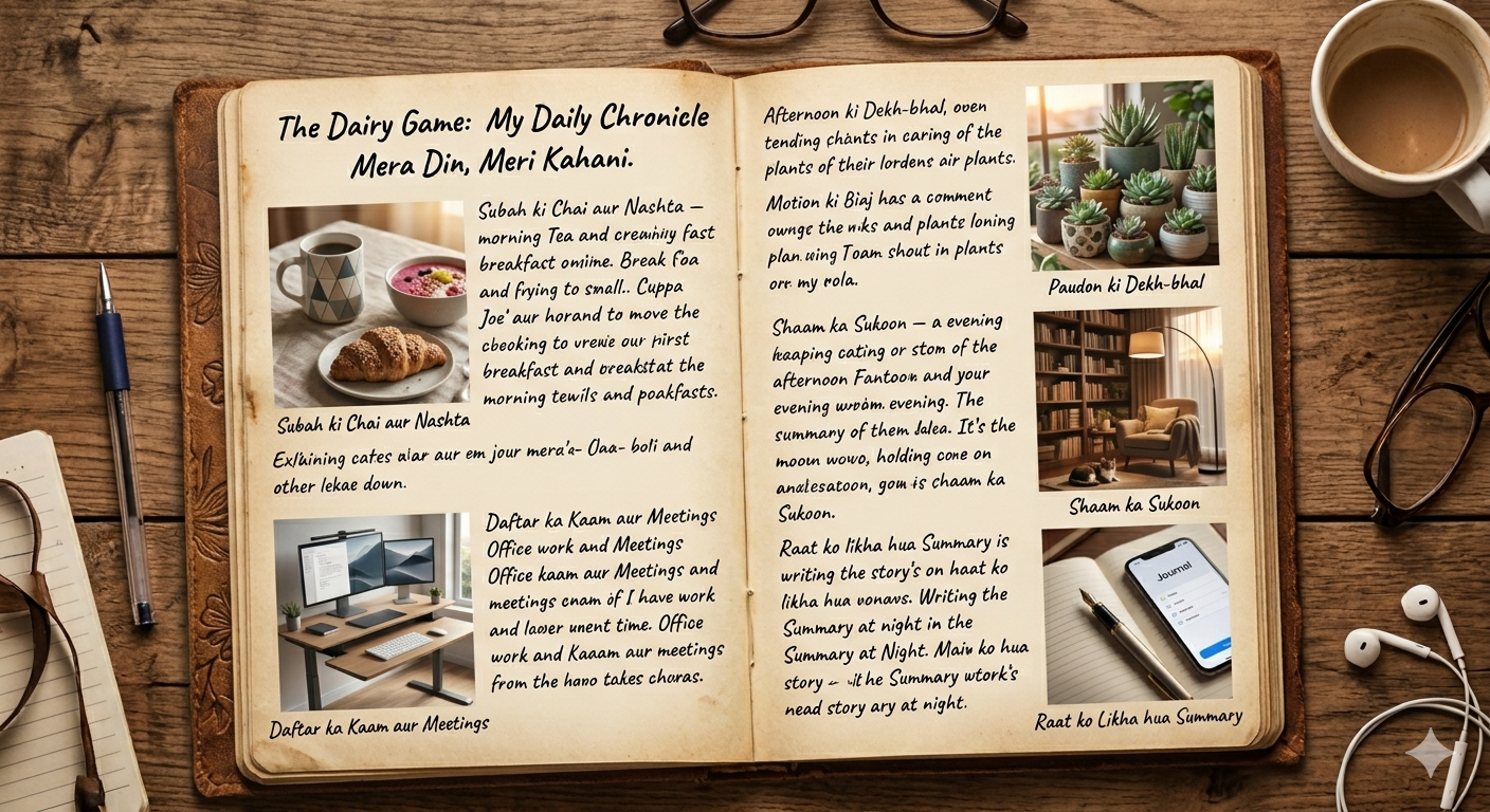 "Zindagi ek safar hai aur har din is safar ka ek naya safha hota hai. Aaj subah jab meri aankh khuli to thandi hawa aur parindon ki chahchahat ne ek naye jazbe ke sath mera istaqbal kiya. Din ka aghaz hamesha ki tarah ibadat aur shukrana-e-bari-tala se hua. Nashte ke baad, maine apne din bhar ke kamo ki ek 'To-Do List' banayi kyunke waqt ki pabandi hi kamyabi ki kunji hai.