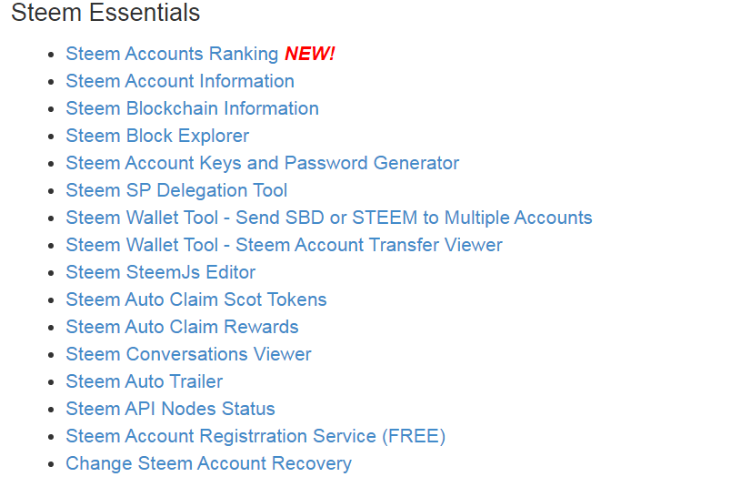 Didalam Steem essentials terdapat lebih kurang enam belas pembagian tool yang dikembangkan oleh @justyy yang sangat berguna dan bermanfaat untuk pengguna steemit, berikut ini saya jelaskan sedikit dari banyak kegunaan tool yang ada didalam steem essentials yaitu sebagai berikut ;