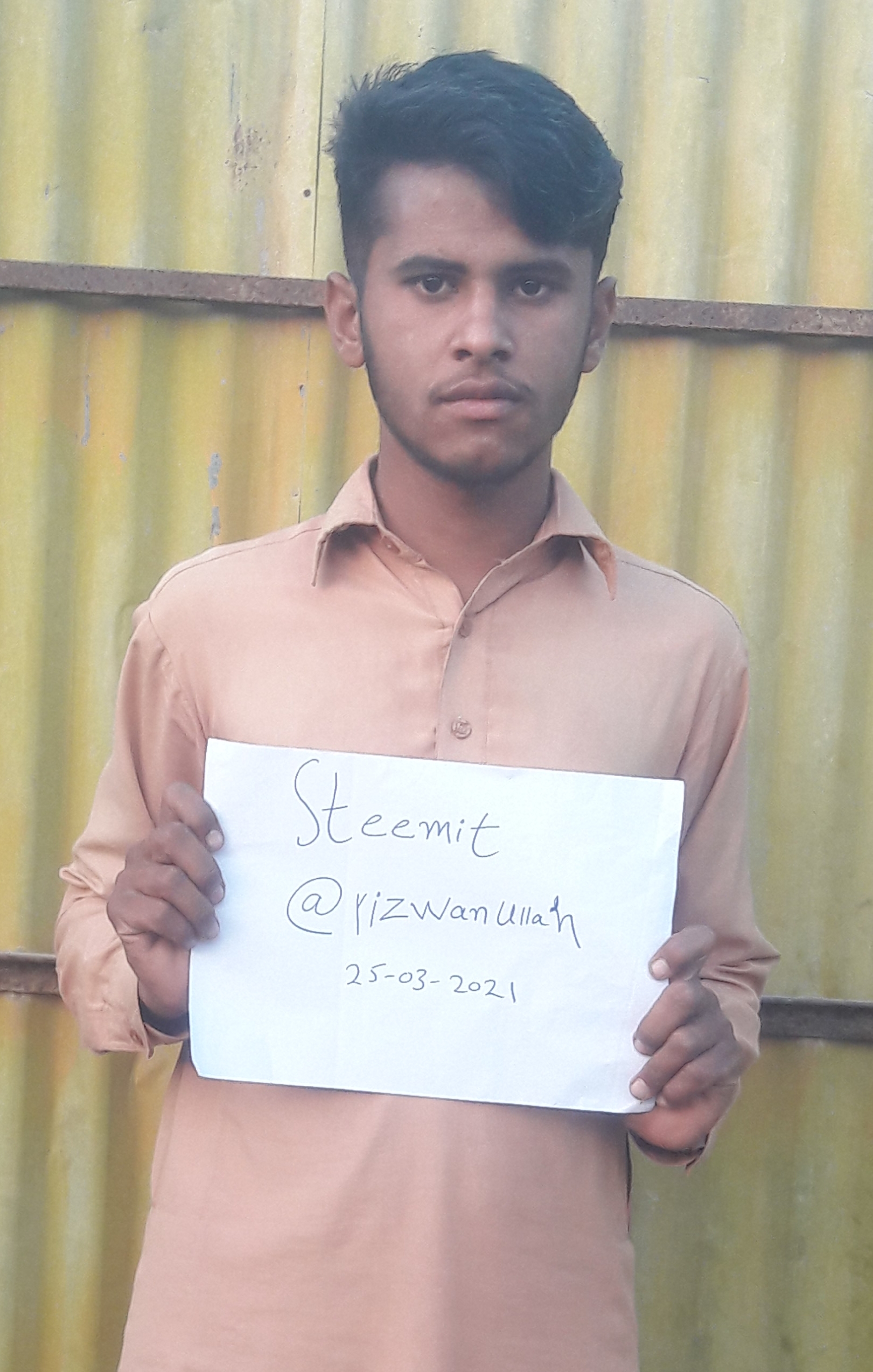 My name is Rizwan Ullah. My father name is M Rafiq. We are four brother and sister. I am 21 year old. All my brothers and sisters are elder than me. I am studying now a days. I want to become a business man.