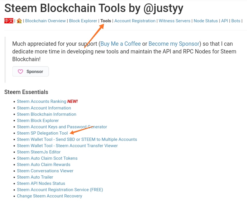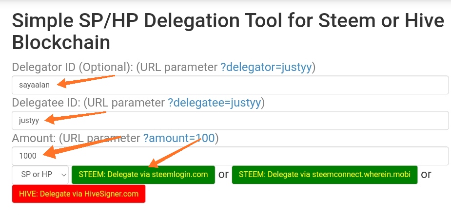 - Pilih Steem SP Delegation Tool