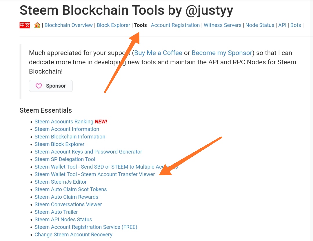 Disini kita dapat memeriksa riwayat pengiriman token steem dan Steem Dollar yang kita lakukan, cara masuk ke menu pengecekan tersebut langsung klik menu Tools kemudian Pilih dan klik Steem Wallet Tool - Steem Account Transfer Viewer, seperti pada gambar dibawah ini :