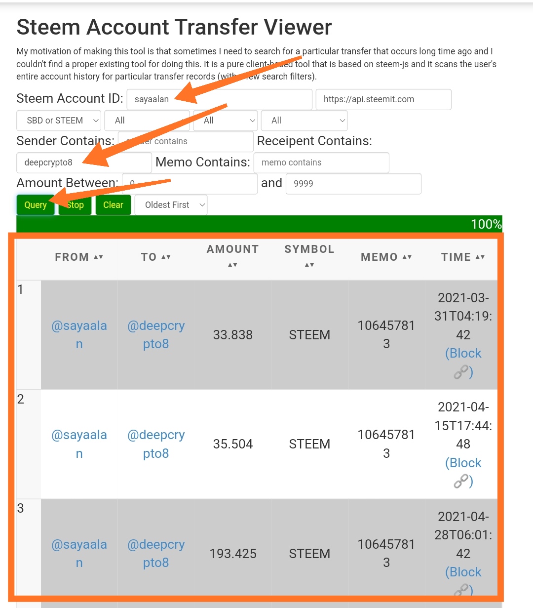 3. Bagaimana kamu memeriksa Riwayat Transfer antara dua akun Steem menggunakan "Steem Wallet Tool - Steem Account Transfer Viewer"?