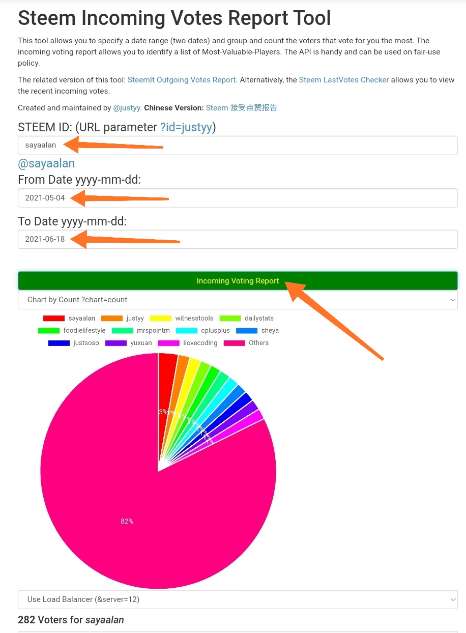 6. Bagaimana kamu memeriksa laporan suara yang masuk untuk periode tertentu menggunakan "Steem Incoming Votes Report"?