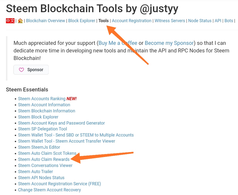 Klik menu Tools kemudian pilih dan klik Steem Auto Claim Rewards maka kita akan diarahkan pada form pengisian klaim reward tersebut.