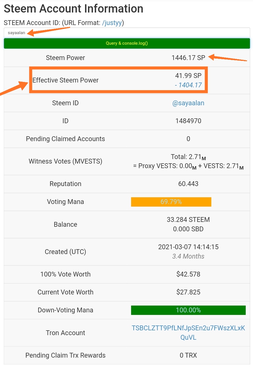 1. Apa yang di maksud dengan Steem Power yang Efektif? masuk ke tool - Tools- Steem Account Information