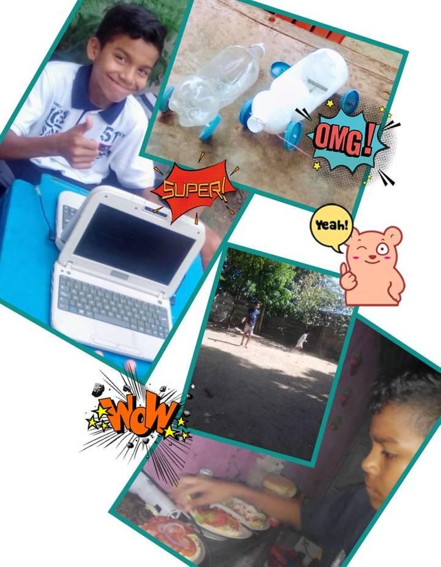 Soy soñador creativo y muy dinámico, como todo niño saco de las casillas a mis padres porque soy un poco hiperactivo, pero aunque no lo crean ayudo mucho a mi madre y mi padre en la cocina, barro el patio, lavo los platos, yo hago papagayo, carros de juguete, yo hago mis propios juguetes para mi y mi hermanito, juego futbol y mi pasión una computadora jugar e investigar.
