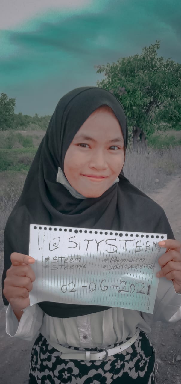 Nama saya sity dengan nama akun steemit adalah @sitysteem, saya berasal dari Aceh Utara / Indonesia. pada hari ini tanggal 02 juni 2021, saya ingin bergabung dalam dunia steemit, semoga saya diterima dengan lapang dada,