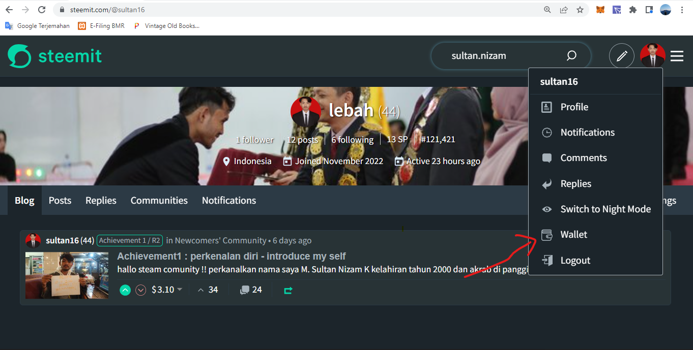 Ya saya telah mengetahui caranya , untuk langkah pertama klik wallet dan masuk menggunakan kata sandi Kunci aktif.