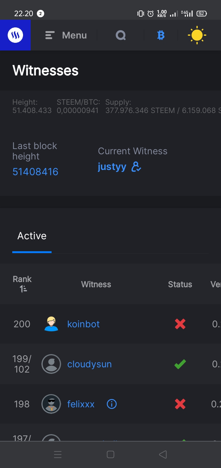 Steemscan.com menyediakan antarmuka yang mudah yang memungkinkan pengguna untuk memilih saksi. Setelah Anda menjadi fitur saksi, Anda akan menemukan daftar panjang dari berbagai saksi dengan informasi mereka dari mana Anda dapat memilih untuk memberikan suara Anda pada salah satu dari mereka dengan cara yang sangat mulus. Seperti yang terlihat di gambar.