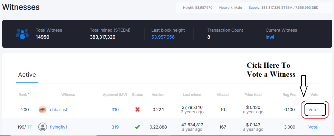 A witness basically means a signature. It’s something that attests to the authenticity of something. We can explore the Steem witness list and directly vote for any witness on the list directly from Steemscan.
